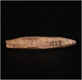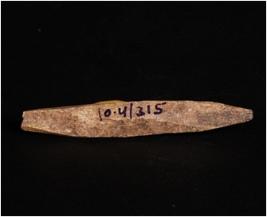 | Description / विवरण | Bone point with ridges and tapered on both ends, smooth and unpolished surface, pointed ends, middle surface is thick with long narrow ends. |