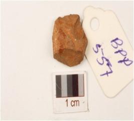| Description / विवरण | A side scraper on flake, regular retouching at ventral surface, visible cortex, flake scars on surface and prominent bulb. |