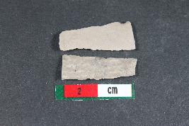 | Description / विवरण | Fragments of blade with two dorsal ridges and smooth surface. The smaller blade has one dorsal ridge. |