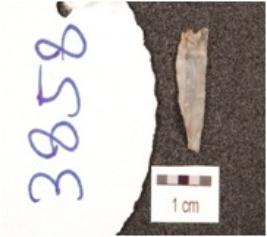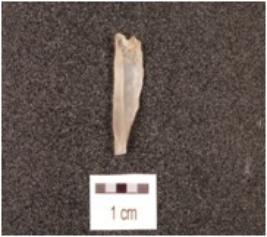 | Description / विवरण | A blade made on end struck quartz flake, flake scars on the dorsal surface and intact use wear marks on the cutting edges. |