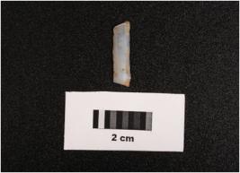 | Description / विवरण | Paralled sided chalcedony blade, mid ridge dorsal, irregular edges, distal end, duffuced bulb. Flat ventral side. |