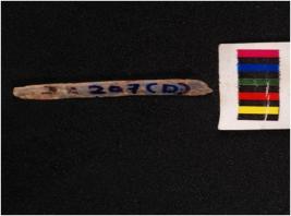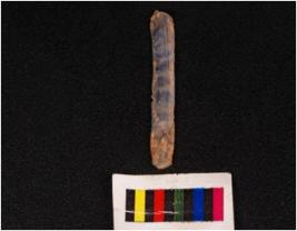 | Description / विवरण | Parallel sided microlithic blade with a ridge on dorsal side, diffused bulb on ventral side and use wear marks on edges. |