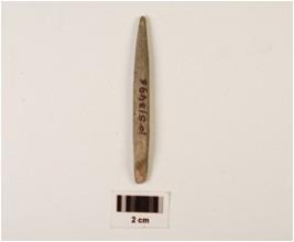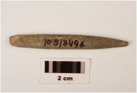 | Description / विवरण | A stone point with polished surface and circular in section, pointed one end other end broken. |