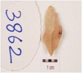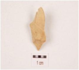 | Description / विवरण | A chert made on utilized side struck flake, flake scars on the dorsal surface and use wear marks on the cutting edges. |