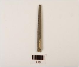 | Description / विवरण | A stone point with polished surface and circular in section, slightly pointed broken end other end broken. |