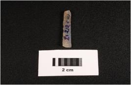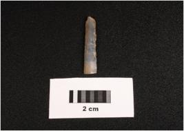| Description / विवरण | Parallel sided microlith blade with use wear marks on cutting edges and prominent mid-ridge on dorsal, diffused bulb on ventral side. |