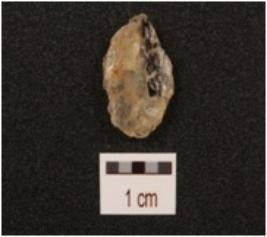 | Description / विवरण | Flake made on quartz, flake scars on one surface, use-wear marks along cutting edges and smooth surface. |