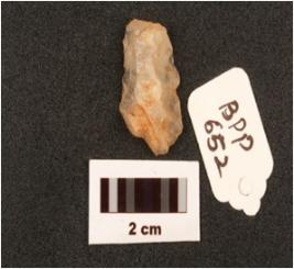 | Description / विवरण | Flake made by quartz with cutting edges and one blade scar on surface. |