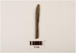 | Description / विवरण | A stone point with polished surface, partly chipped off surface and plano-convex in section. |