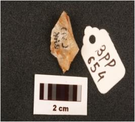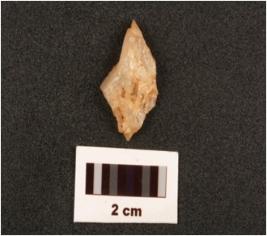 | Description / विवरण | Quartz flake with flake scars on surface. |