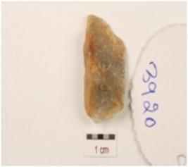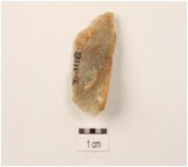 | Description / विवरण | Flake made on end-struck quartz flake, cortex on platform and use-wear marks along cutting edge. |