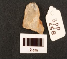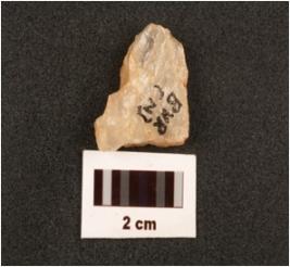 | Description / विवरण | Quartz flake with flake scars on surface. |