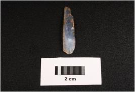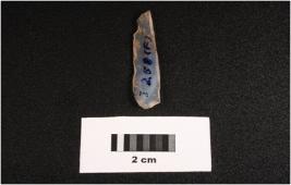 | Description / विवरण | Microlithic blade with flake scars on dorsal. Bulb on proximal end and partly chipped off at distal end. |