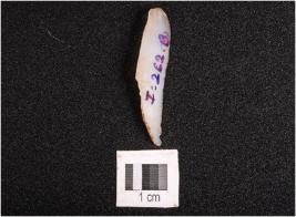 | Description / विवरण | Backed point with a mid ridge on dorsal side, diffused bulb on ventral side, pointed at distal end and use wear marks on edges. |