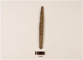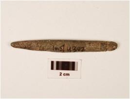 | Description / विवरण | A stone point without eye hole, rough surface, one side pointed. |