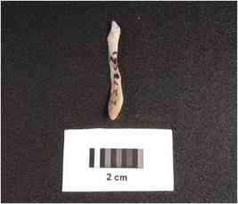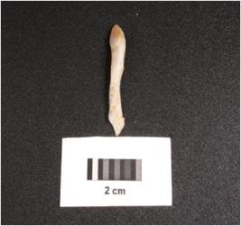 | Description / विवरण | Microlithic blade o n chalcedony with prominent wavy mid-ridge on dorsal, triangular in section, usewear mark along the cutting edges, diffused bulb. |