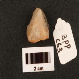 | Description / विवरण | Quartz flake, with flake scars on surface. |