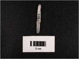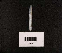 | Description / विवरण | Microlithic blade on chalcedony, mid ridge on dorsal, deffuced bulb on proximal end, flat ventral. |