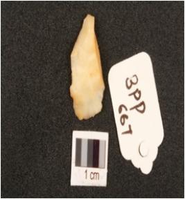| Description / विवरण | Scrapper made by chalcedony, with edges and prepared platform. |