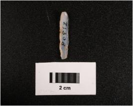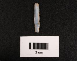 | Description / विवरण | Microlithic blade on chalcedony, mid ridge on dorsal, flat ventral, irregular edges. |