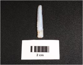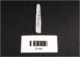 | Description / विवरण | Parallel sided microlithic blade with prominent mid ridge on dorsal. Triangular in section and use wear marks on cutting edges. |