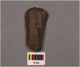 | Description / विवरण | Side scraper detached from end struck flake, prepared platform, bulb on ventral side, irregular retouch on the left and right cutting edge. |