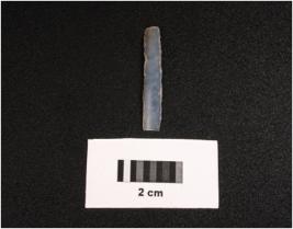 | Description / विवरण | Parallel sided microlithic blade with double. Trapezoid in section and use wear marks on cutting edges. |