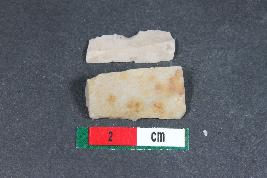 | Description / विवरण | Fragment of a blade with one dorsal ridge having smooth surface. Fragment of a blade with one dorsal ridge having smooth surface. |