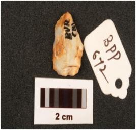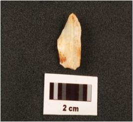| Description / विवरण | Chalcedony flake with flake scars on surface. |