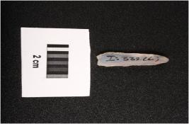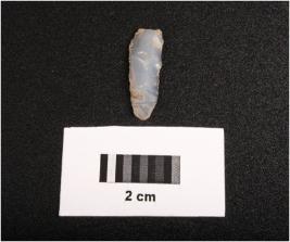 | Description / विवरण | Fragment of blade with prominent mid ridge on dorsal. Diffused bulb on proximal end. Flake scars and ripple marks on dorsal. Triangular in section and broken distal end. |