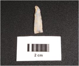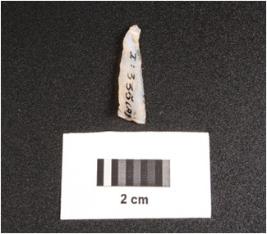 | Description / विवरण | Microlithic blade on chalcedony with prominent mid ridge on dorsal, triangular in section, use wear marks along the cutting edges broken. |