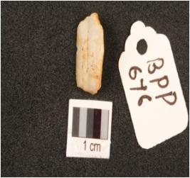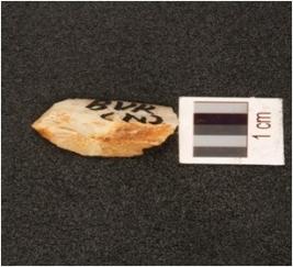 | Description / विवरण | Chalcedony flake with flake scars on surface. |