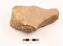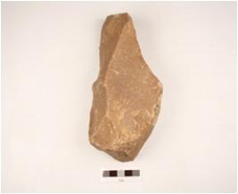 | Description / विवरण | A large handaxe made on core, large flake scars on surface visible cortex prepared platform, block on block method. |