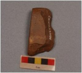 | Description / विवरण | A side scraper detached from side struck flake, prepared platform, bulb on ventral side, regular retouch on the right and left cutting edge. |