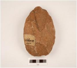 | Description / विवरण | An end scrapper made on quartzite, made on side struck flake, prepared platform on one side, use wear marks on edges. |