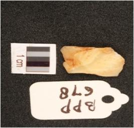 | Description / विवरण | Chalcedony flake with flake scars on surface. |