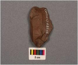| Description / विवरण | A side scraper detach from side struck flake, prepared plat form, bulb on ventral side and irregular retouch on the right cutting edge on the dorsal side. |