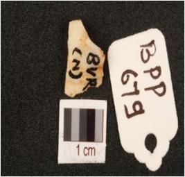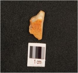| Description / विवरण | Chalcedony flake with flake scars on surface. |