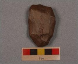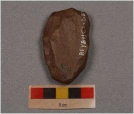 | Description / विवरण | A side scraper detach from end struck flake, prepared platform, bulb on ventral side, regular retouch on the right and left cutting. |
