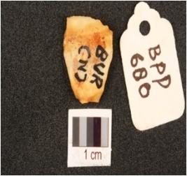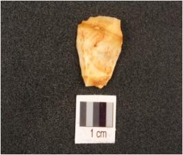 | Description / विवरण | Chalcedony flake with flake scars on surface. |