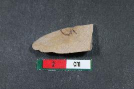 | Description / विवरण | Fragment of a blade with two dorsal ridges and a bulb of percussion on ventral side having smooth surface. |