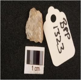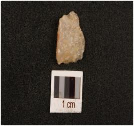 | Description / विवरण | Quartz side scraper with use wear marks along cutting edges and striking platform. |