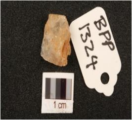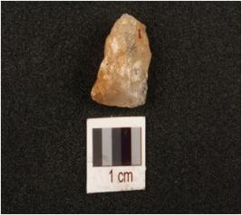 | Description / विवरण | Rock crystal flake with four flake scars on surface and cortex visible. |