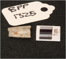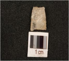 | Description / विवरण | Fragment quartz blade with use wear marks along cutting edges, ridge on a dorsal surface and triangular section. |