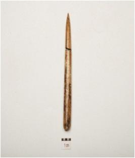 | Description / विवरण | A point made on bone with polished surface, elongated body, intact one end, pointed towards other end, circular in section. |