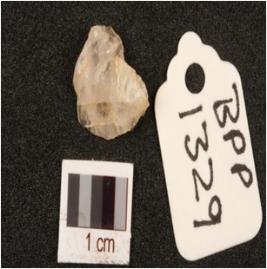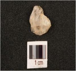 | Description / विवरण | Quartz scraper with use wear marks along cutting edges, prepared platform and trapezoidal in seciton. |