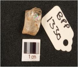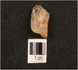 | Description / विवरण | Quartz scraper with use wear marks along cutting edges, prepared platform and trapezoidal in seciton. |