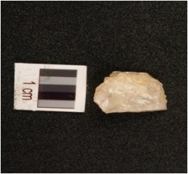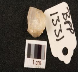 | Description / विवरण | Quartz flake with three flake scars on surface. |