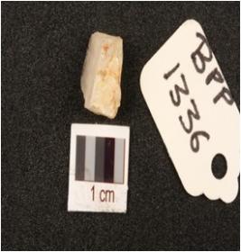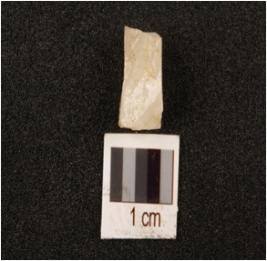 | Description / विवरण | Quartz flake with four flake scars on surface and prepared platform. |
