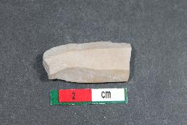 | Description / विवरण | Fragment of parallel sided blade with two dorsal ridges and positive bulb of percussion having smooth surface. |